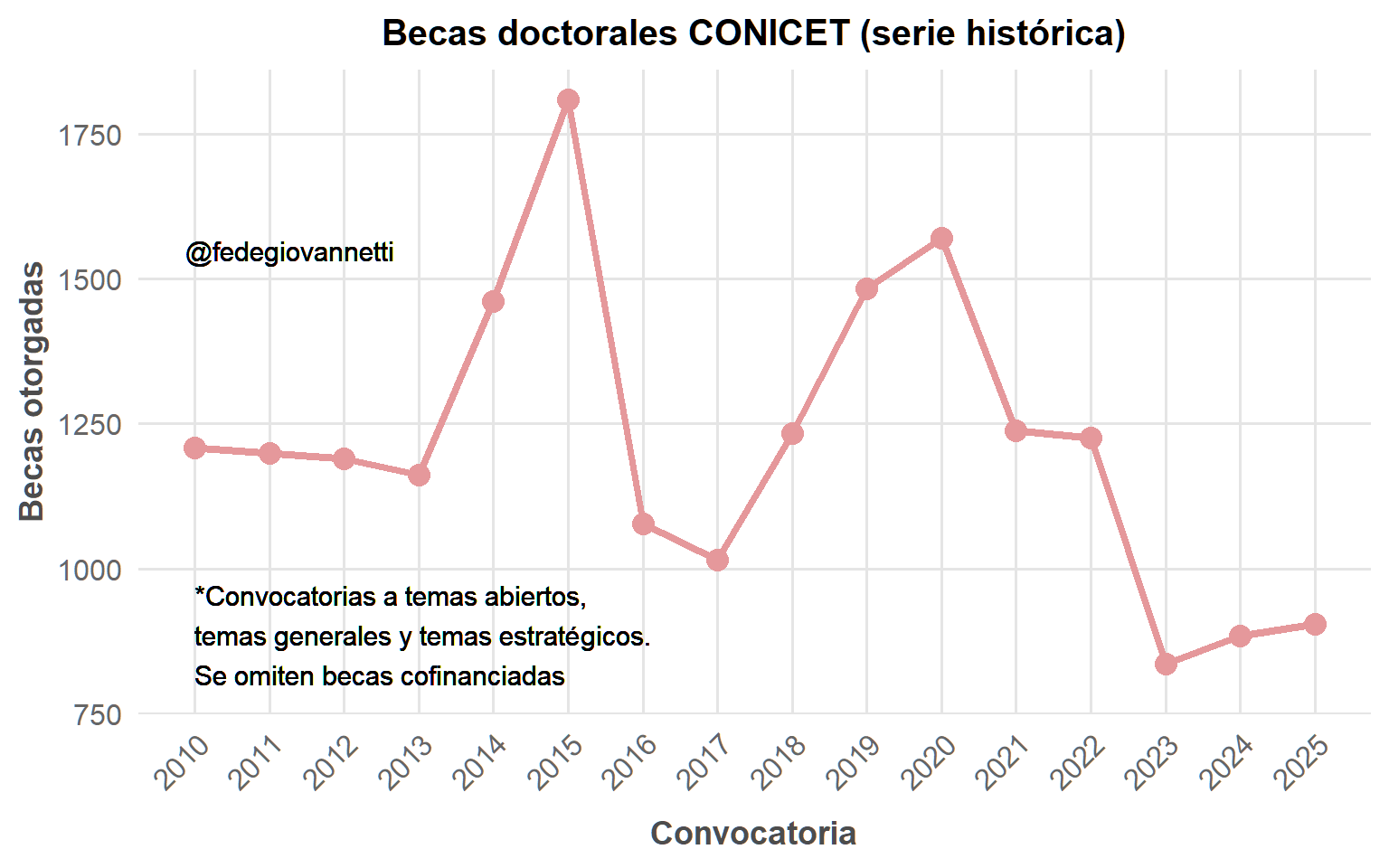 En esta sección, se visualizan los datos de becas doctorales y postdoctorales sin agrupar por Gran Área.